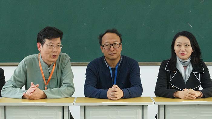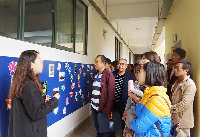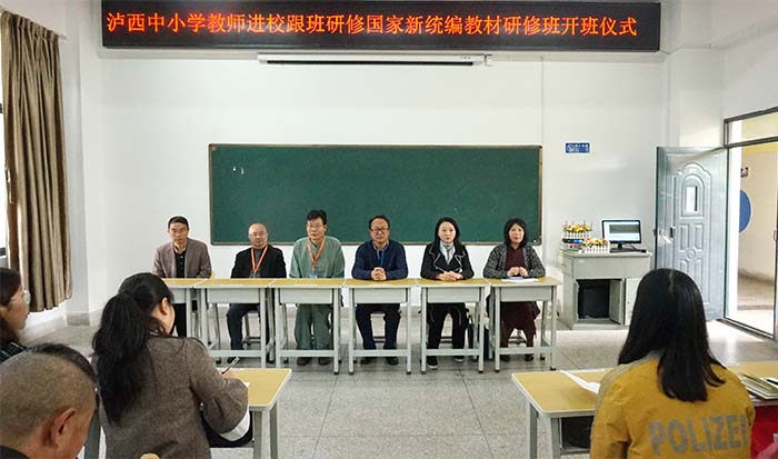 10月15日,附属学校晨会迎来了55张灿烂的笑脸,他们是泸西县中小学的各位领导及教师,将在我校进行为期一周的国家新统编教材跟岗研修。晨会结束后,在学校工作人员的统一带领下,邀请老师们集体参观学校教学楼二楼文化走廊建设,感受我校的校园文化的魅力。 上午,附属学校党总支书记王海艳、校长李晋德,副校长罗蓉、李广峰及部分相关教师在教学楼211会议室为55位泸西县中小学教师进校跟岗研修举行开班仪式。