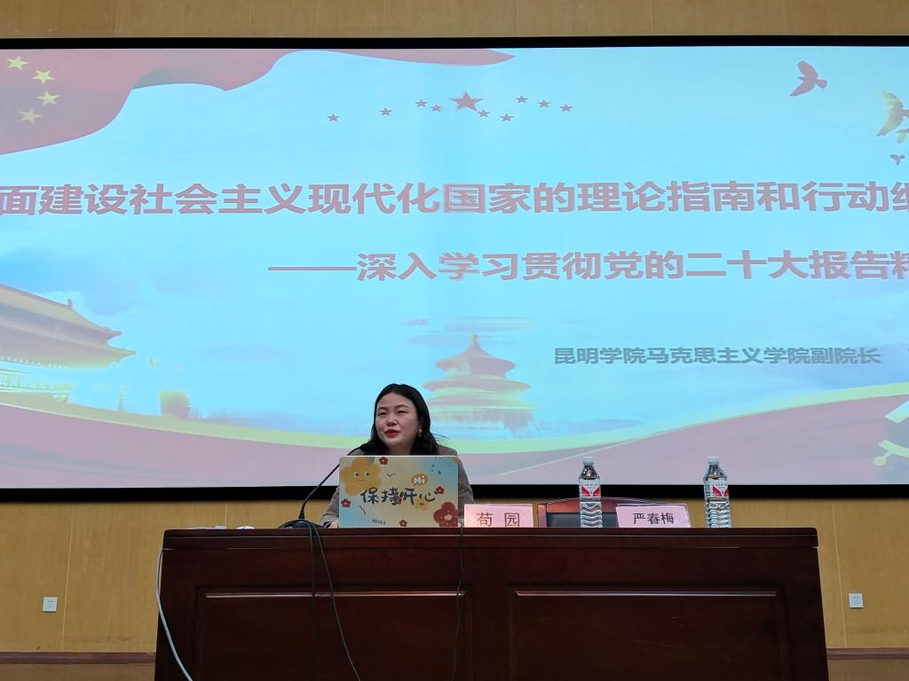 苟园老师从学习党的二十大精神的重大意义、擘画中国式现代化的宏伟蓝图和全面准确学习领会党的二十大精神三个方面作了解读。党的二十大对中国式现代化进行新的系统阐述和战略谋划,系统回答中国之问、世界之问、时代之问、历史之问,从经济、政治、文化、社会、生态文明等全方位展示了中国之路、中国之治、中国之理,为全球治理提供中国智慧、中国方案。