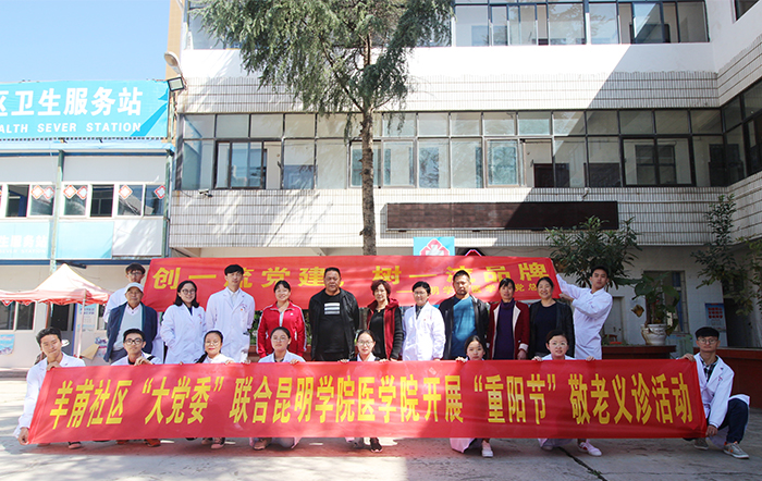 为加强与社区的交流和合作,yl23455永利官网医学院党支部应羊甫社区党总支的邀请,到羊甫社区开展“重阳节”敬老义诊活动。重阳节是中华民族传统的敬老节日,医学院根据自己的学科专业背景和特长,在总支书记王建华的统筹安排带领下,制定具体的实施方案和计划,组建了基层服务进社区的志愿团队,其中教授、副教授5人,博士4人师生26人,义诊服务内容采取点面结合、师生结合等方式开展。