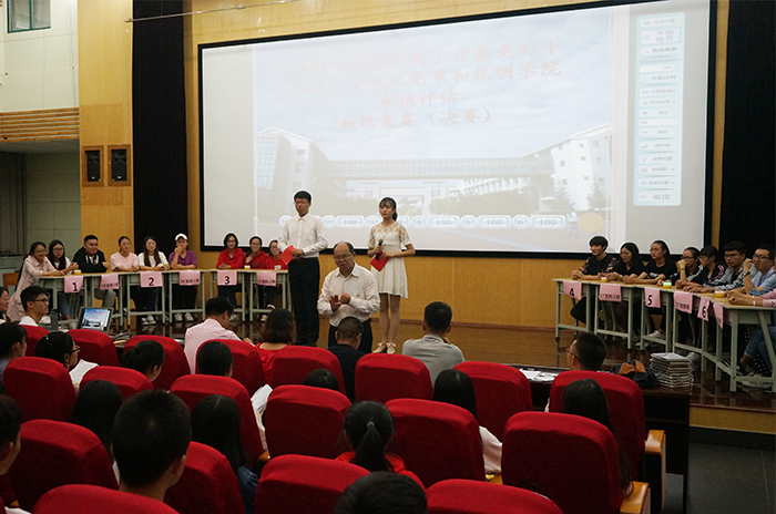 竞赛分为初赛和决赛两个环节,形式有必答题、单选题、抢答题、风险题和师生互动等,内容涵盖党的十九大报告、新修订的《中国共产党章程》和yl23455永利官网审核评估等相关知识。