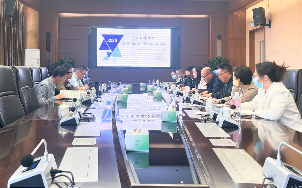 为进一步加强校政企联动,实现“用人单位大走访,全员联动促就业”,经济管理学院联合安宁市人力资源和社会保障局、安宁市公共就业和人才服务中心、安宁市工商联及部分驻安企业共同开展“兴安就业行”专项访企拓岗活动。4月4日,经济管理学院党委书记樊传章,副院长曾伟、肖磊带领2019级毕业班班主任和毕业生代表共30余人到安宁市政府座谈交流。