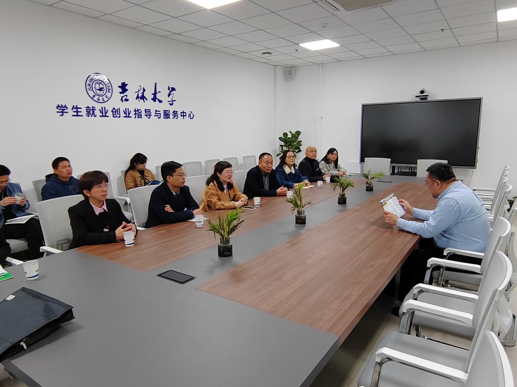 郭华副校长一行还到吉林大学就业指导中心进行了座谈交流,详细了解了吉林大学博士生培养及各专业毕业博士的情况,希望吉林大学与我校建立良好的常态化长效化沟通机制,通过各种方式向博士生们宣传我校,积极推荐优秀博士到我校工作。
