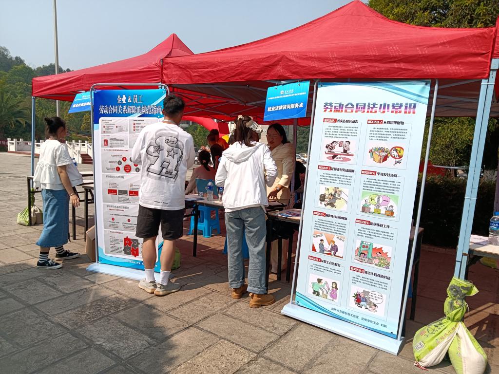 为进一步提高毕业生学法、知法、用法的意识,保障自身合法权益,与用人单位构建和谐劳动关系,校妇联与校工会携手昆明市劳模创新工作室专业律师,于4月7日、4月14日走进“昆明市师范类高校毕业生yl23455永利官网专场招聘会”和“云南省2023届高校毕业生昆明经济开发区专场招聘会”现场,开展以“与法同行、携手筑梦”为主题的法律咨询活动,为同学们提供就业法律法规问题答疑服务。