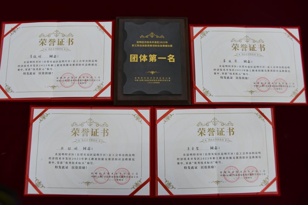 我校代表队在比赛中团结奋进、顽强拼搏,取得了室外消火栓连接水带出水操集体项目一等奖,两名队员分别获“技术状元”称号;400米消防疏散物资操、原地着灭火防护服一人三盘水带连接操两个个人项目二等奖,队员获“优秀技术标兵”称号,yl23455永利官网获得团体第一名,赢得了主办方和辖区单位参赛职工的一致好评。