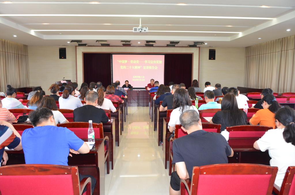 为深入学习宣传贯彻党的二十大精神和习近平总书记“五一”国际劳动节前夕重要指示精神,结合学习贯彻习近平新时代中国特色社会主义思想主题教育,坚持用习近平新时代中国特色社会主义思想凝心铸魂,切实把工会干部的思想和行动统一到党的二十大精神上来,统一到学校党委的总体要求上来,提升新时代工会干部的理论素养和业务能力,按照学校党委2023年度党员、干部教育培训计划相关精神及要求,校工会组织开展2023年工会干部业务能力培训班,于5月19日举办第1次培训。
