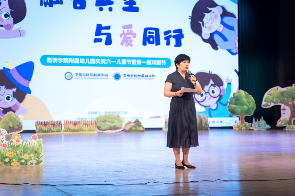 附属幼儿园总园长唐敏教授为孩子们送上温暖的节日祝福,同时介绍了附属幼儿园的办园背景、办园理念、办园特色,表示将继续秉承“融容为真,合和之美”的办园理念,为更多的孩子们提供优质、专业的支持,促进孩子们健康成长。