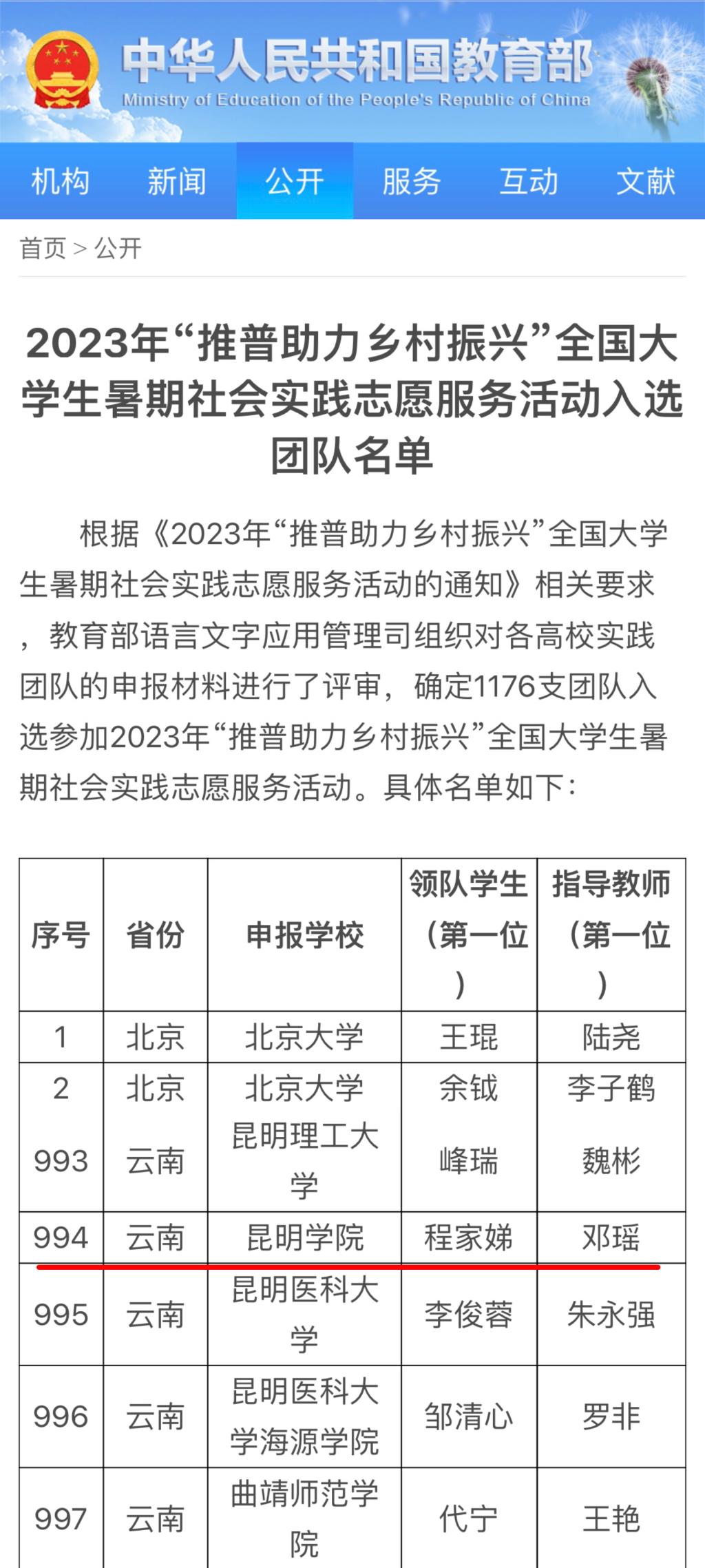 近日,教育部官网公布了2023年“推普助力乡村振兴”全国大学生暑期社会实践志愿服务活动入选团队名单,我校省级国家通用语言文字推广基地项目执行负责人邓瑶教授带队指导的“yl23455永利官网赴西双版纳勐遮镇推普助力乡村振兴服务队”成为我校唯一入选团队。该项活动由教育部语用司联合团中央青年发展部共同举办,旨在深入学习贯彻落实党的二十大精神,加大国家通用语言文字推广力度,服务铸牢中华民族共同体意识。