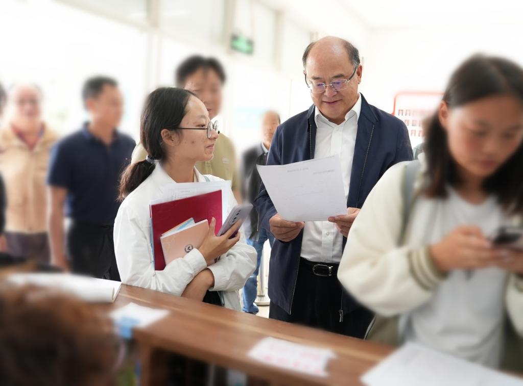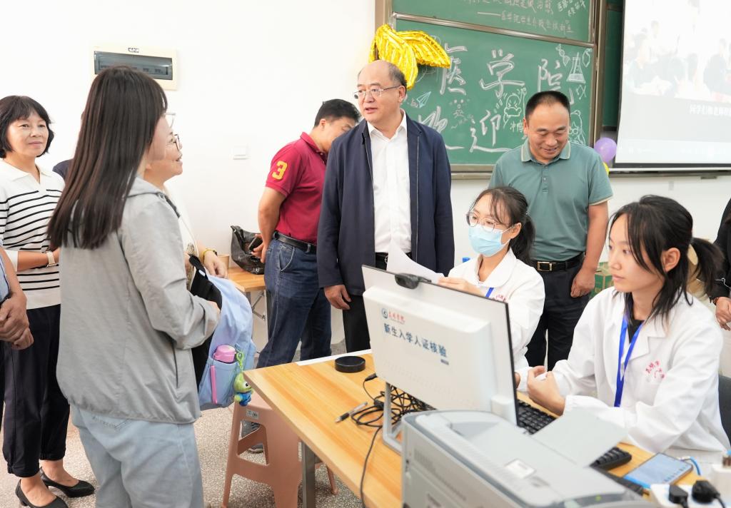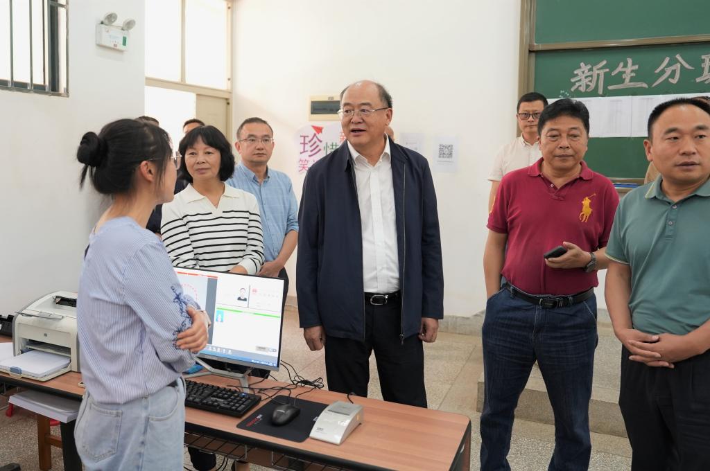 在学校南门、博雅楼新生接待处,金幼和一行查看了交通引导、新生入校接待、迎新宣传、各学院临时服务点等工作开展情况,并向现场工作人员和志愿者表示慰问。