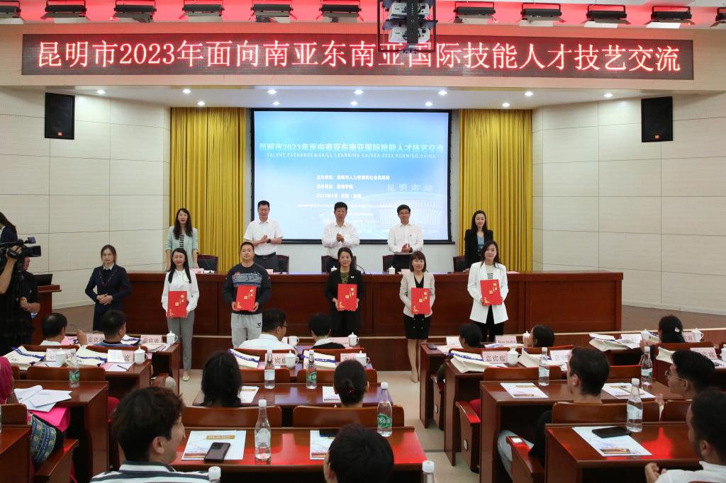 9月12日上午,由昆明市人力资源和社会保障局主办,yl23455永利官网国际学院承办的第四届昆明市面向南亚东南亚国际技能人才技艺交流在我校开班。