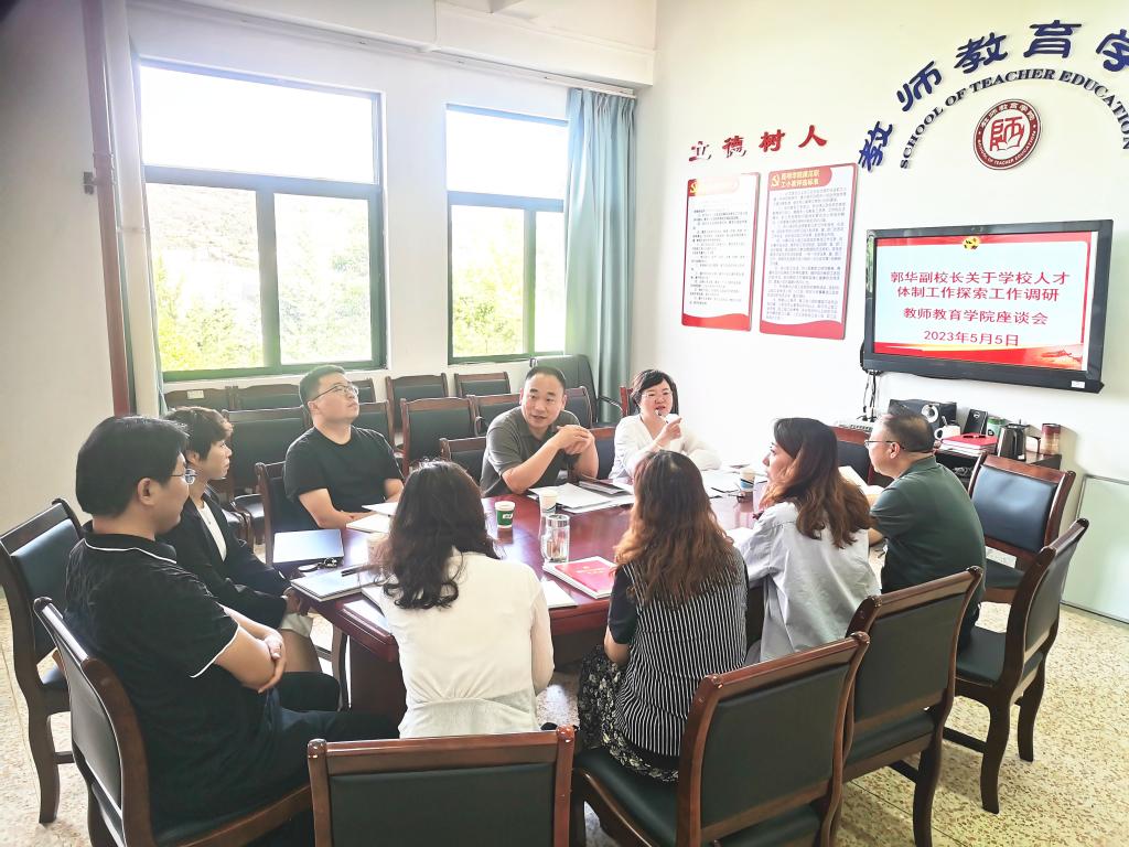 5月5日下午,郭华副校长带队到教师教育学院开展学校人才体制工作探索工作调研,教师教育学院党政领导班子成员、教师支部书记余秋梅、博士代表陈玉芳、闫昌锐参加了座谈会。