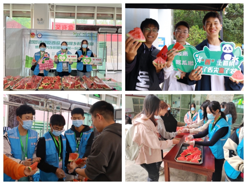 乡村振兴,助农先行!为进一步引导广大昆院青年学习宣传贯彻习近平生态文明思想,坚持系统观念全面推进乡村振兴,引导广大青少年投身于乡村振兴,成为乡村振兴中的“青春力量”,我校积极发动组织同学们参与“我为母校赢西瓜”活动。在9727名同学的共同努力下,我校获得了全国第十名和云南省第二名的好成绩,10月13日至17日,校团委协同后勤集团在南北苑食堂开展了yl23455永利官网“团团请你吃西瓜,助推乡村振兴路”活动。