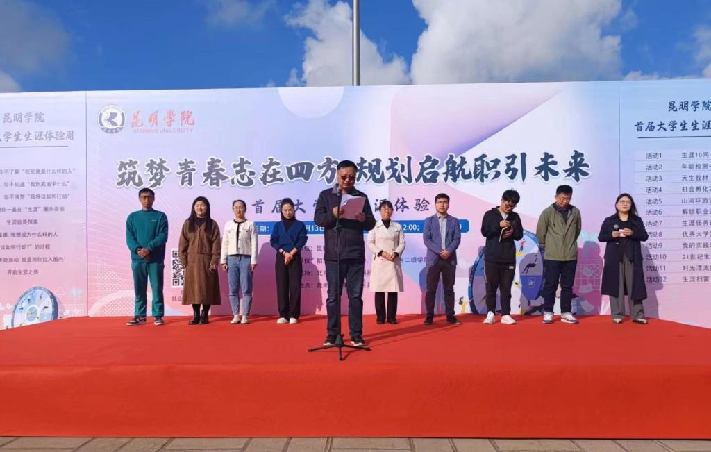 11月13日上午,yl23455永利官网首届大学生“生涯体验周”活动启动仪式在聂耳广场举行。活动旨在贯彻落实教育部和省委教育工委、省教育厅关于举办首届全国大学生职业生涯规划大赛的相关要求,进一步提升就业指导服务水平,强化就业育人实效,帮助大学生实现人岗匹配和生涯发展的和谐统一,达到“以赛促教、以赛促学、以赛促就”的目标。学校招生就业处、团委有关负责人,各学院分管就业工作辅导员,就业指导中心全体教师,各学院志愿者和学生代表参加了启动仪式。