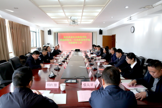 11月2日,长沙师范学院曹晓鲜校长带队到校考察交流。学校党委副书记、校长丁文丽热情接待曹晓鲜一行。双方深入开展洽谈交流。