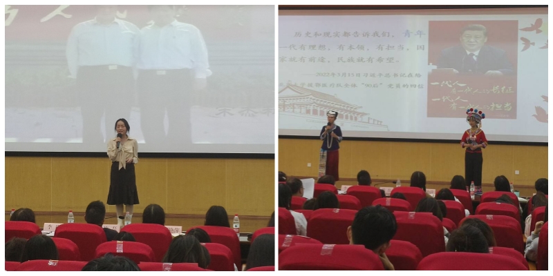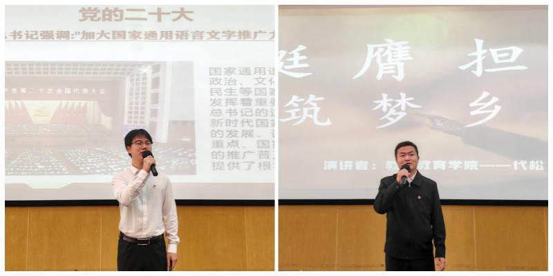 结业仪式上,yl23455永利官网第二届大学生“学习贯彻习近平新时代中国特色社会主义思想”理论宣讲比赛参赛代表为“青马”学员们进行了宣讲。