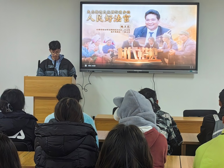 12月26日,数学学院团委组织2021级至2023级各班团支书、团员代表30余人在学校“一站式”党建文化悦读空间开展《学习时代楷模鲍卫忠先进事迹》活动,深入学习和了解云南少数民族地区时代楷模鲍卫忠扎根边疆、卫戍正义、忠勇执法,用生命实现了入党誓词的先进事迹。