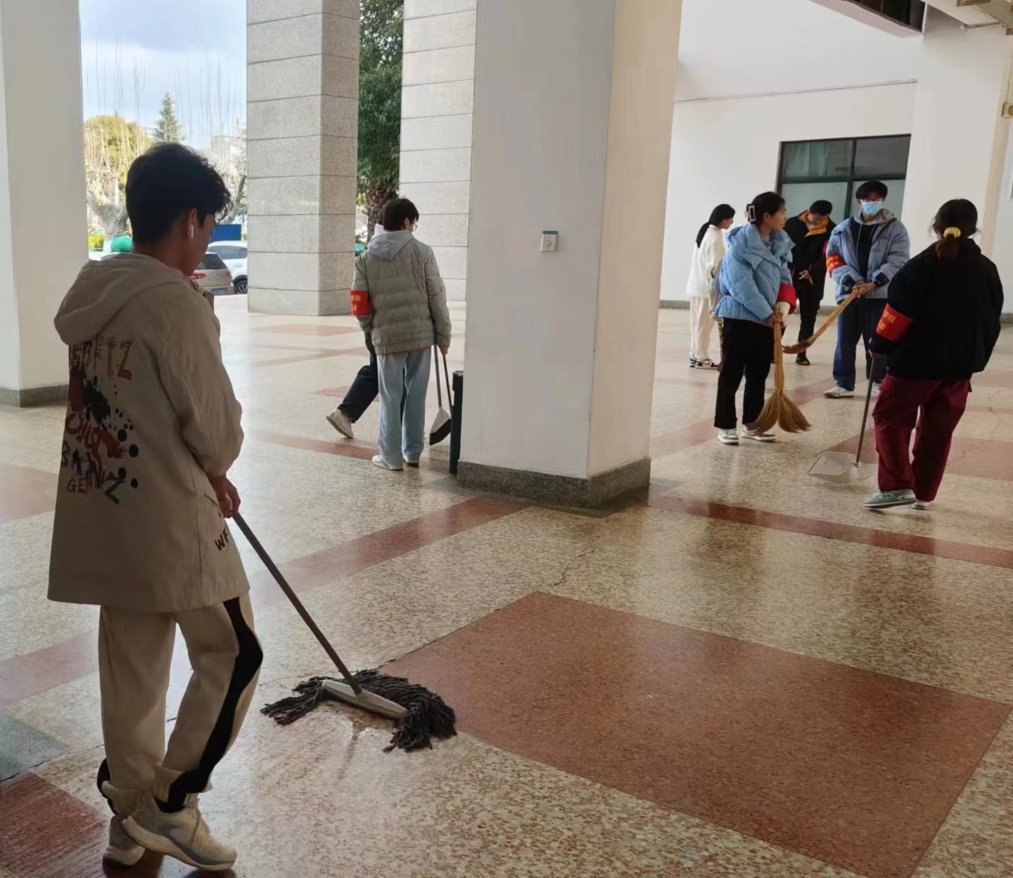 12月27日,数学学院组织学院辅导员助理、学生会各部门、班委等学生干部70余人,开展包保片区惟真楼一栋大扫除工作,对片区内的地面、墙面、标识、物件等进行清理和打扫,对卫生死角进行了彻底清理,专项整治工作取得实效。