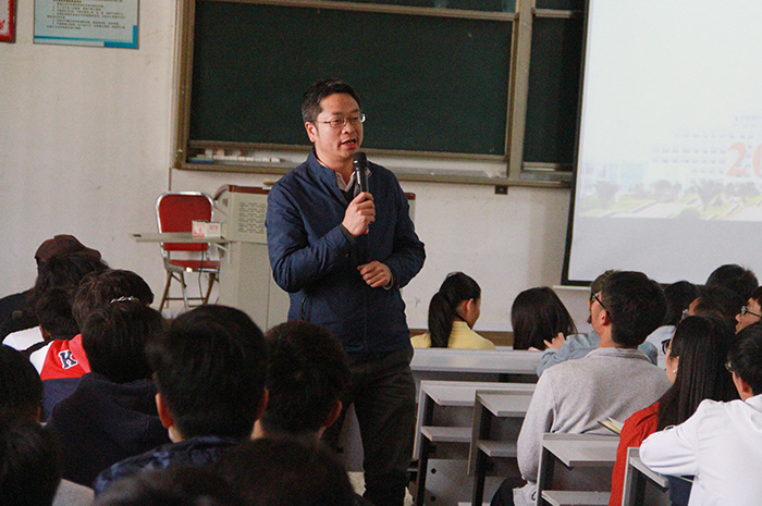 随后,由2015级考研成功的学生代表邓乐乐同学向大家分享考研的方法。邓乐乐表示要认清自己才能很好的去报考,同时还要科学报考,考虑一些因素:学校的地区、专业、知名度、报考的人数等,考研要提前做好准备工作,安排好今后的课程,充分的利用好时间。