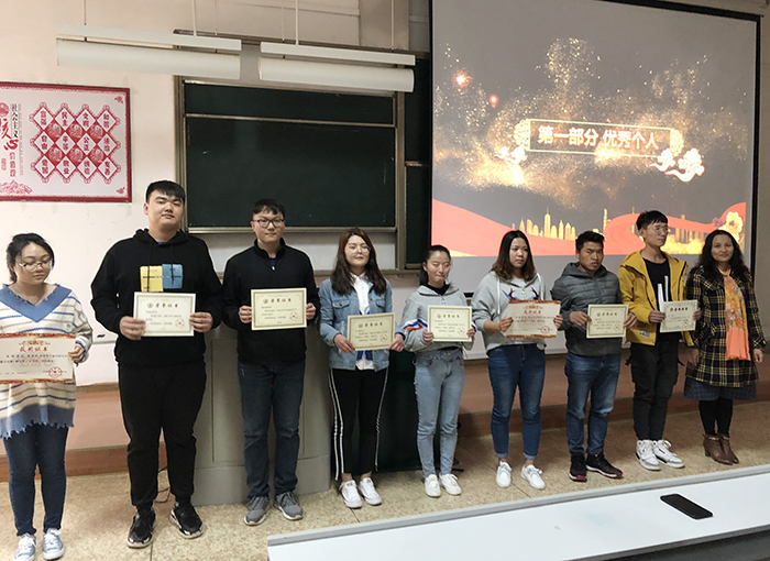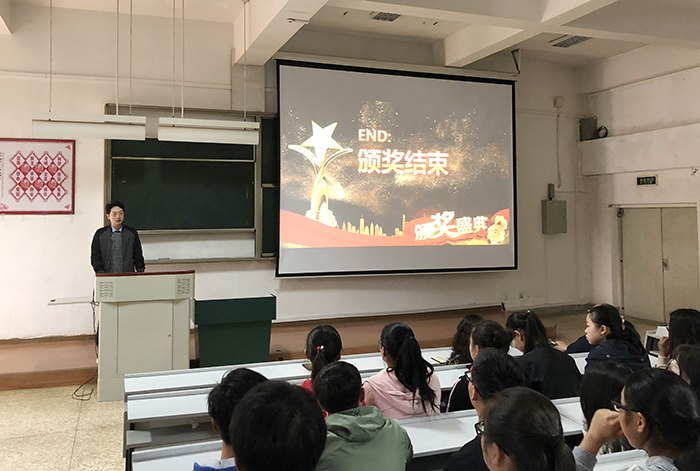 会议播放了2018—2019学年上学期数学系学生工作总结PPT,展示了学生工作情况及学生活动风采。主持人宣读了积极参与各类活动并取得优秀成绩的同学和集体的名单,并由各位老师为获奖代表颁发奖状。