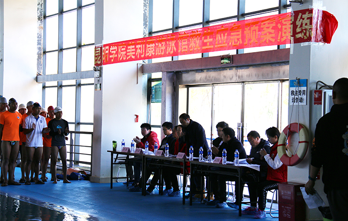 12月26日,为加强游泳馆安全管理,防止溺水事故发生,确保泳客生命和财产安全,按照“以人为本,安全第一,预防为主”的原则,后勤集团与昆明美利康节能科技有限公司于在yl23455永利官网游泳馆联合举办了2018年水上救生应急演练。