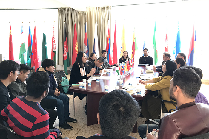 调研会上,田慧君博士介绍了国际工程教育中心基本情况和国际工程教育培训班举办情况。联合国教科文组织(UNESCO)国际工程教育中心(ICEE)是以工程教育为活动主题的UNESCO二类机构。中心面向《联合国2030年可持续发展议程》,致力于构建全球工程教育共同体,支撑经济社会的可持续发展,推动人类共同文明和进步。国际工程教育中心围绕世界各国特别是发展中国家的工程教育质量与公平重大议题,坚持创新驱动和产学合作,建设成为高水平的人才培养基地、智库型的研究咨询中心和国际化的交流平台。田慧君博士赞扬了2018年我校参加在清华大学举办的“2018 ICEE&IKCEST国际工程教育援外培训班”并取得良好的成绩的孟加拉留学生NOMAN AHMED, 希望双方能够在工程教育领域继续合作。我校教务处处长解永刚表示,双方在教学、培训讲座等方面有较大合作空间,同时建议中心深度优化线上培养模式,给学生更多的时间理解和吸收所学知识。国际学院行政负责人王文君表示,我校留学生 均来自“一带一路”沿线国家,双方在国际合作方面有较多契合点,可实现人才培养共赢。会后,田慧君博士一行为国际学院工科留学生学生演示了2018微专业线上学习,并宣讲了2019年计算机基础微专业混合学习项目。