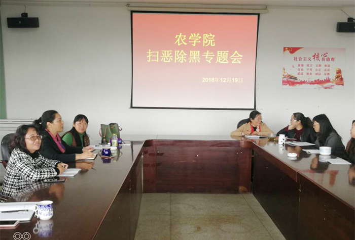 12月19日,农学院召开扫黑除恶专项斗争动员会。农学院党政领导,辅导员、班主任参加了会议。