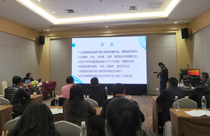 会上,我校工程技术研究中心主任刘玉强研究员作题为《云南省农用塑料地膜应用的关键技术问题探讨》的主题报告。刘玉强研究员向行业内企业介绍了我校省级工程中心的主要功能与平台所能提供的技术与咨询服务,并对云南高原地区典型的地膜热穿孔问题做深入分析,引起参会人员的广泛共鸣。他还在地膜回收利用、全生物降解地膜产品等方面提出相应的技术方案,供业内人士探讨。