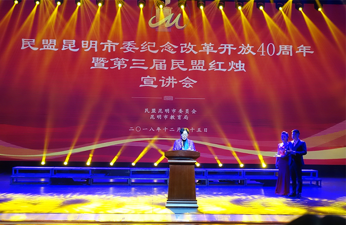 12月25日,民盟昆明市委“纪念改革开放40周年暨第三届民盟红烛宣讲会”在昆明市工人文化宫职工剧场举行。 民盟yl23455永利官网总支盟员、人文学院副教授李艳峰博士荣获第三届“民盟红烛”称号。