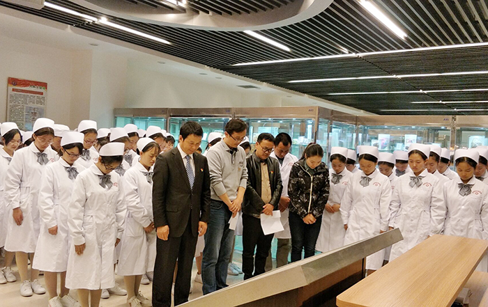 4月3日,医学院团总支开展在医学楼人体生命科学馆内为特殊的逝者“大体老师”举行了一场名为“气清景明,致敬生命——追思无语良师”追思会。