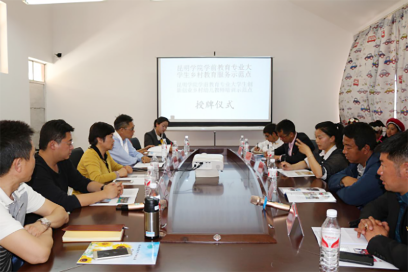 4月13日,学前与特殊教育学院院长唐敏、书记沈中灿一行到香格里拉市三坝乡中心幼儿园(哈巴村分园)出席“yl23455永利官网学前教育专业大学生乡村教育服务示范点和“大学生创新创业乡村幼儿教师培训示范点”授牌仪式。本次授牌仪式是在香格里拉市教育体育局和yl23455永利官网学前与特殊教育学院两年多的通力合作基础上举办的,香格里拉市体育教育局局长牛盈春,三坝乡副乡长树继文参加授牌仪式。