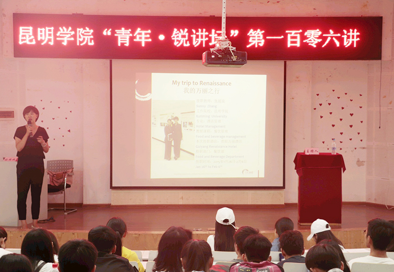 6月6日晚,yl23455永利官网校团委主办,旅游学院承办的“青年•锐讲坛”第一百零六讲“走近酒店行业——我的“万豪”之行”主题讲座在青年中心学生报告厅成功举办。讲座邀请酒店管理教研室张超旋老师主讲。张超旋老师资历丰富,是美国圣地亚哥州立大学访问学者,获美国饭店协会CGSP、CHE、STR认证。
