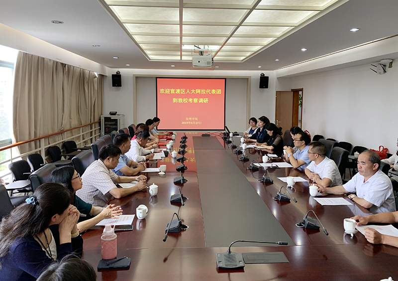 6月27日上午,官渡区人大常委会阿拉代表团一行21人到我校考察调研。调研活动由我校党委统战部承办。考察调研的主题是“yl23455永利官网应用型本科院校办学特色”,探讨“地方性高校与地方建设互促发展”的前景与途径。统战部蔡华仙部长在调研会议上讲话,对考察团的到来表示欢迎,向考察团介绍了考察活动的内容和时间安排,介绍了近几年来我校在建设、发展和服务地方经济方面情况。