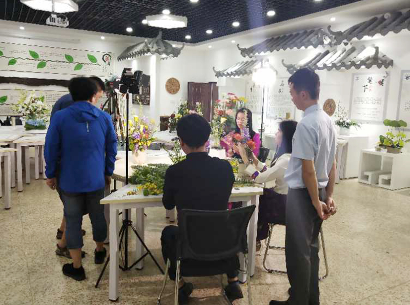 7月6日上午,昆明广播电视台全媒体新闻中心形象片工作部到我校中心滇池流域花文化展示与体验分馆取景拍摄春城花都宣传片—夏花。