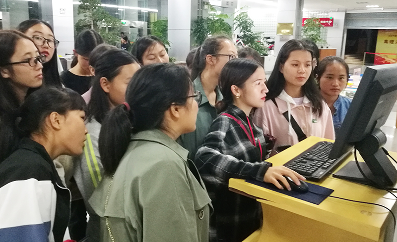 此次入馆教育采取“学习+参观”的方式,以学院为单位,在电子阅览室通过“新生入馆指南”系统学习图书馆概况、图书馆资源与服务、文献查找及借阅规则、图书馆主页及电子资源的检索、图书馆规章制度等内容。随后,新生进入图书馆,了解馆藏查询、馆藏资源分布、图书借阅以及如何做一个文明读者等。