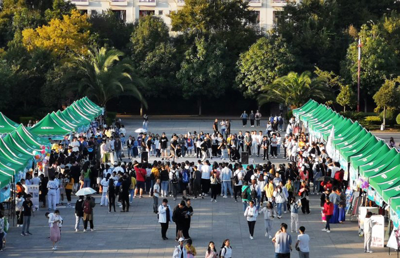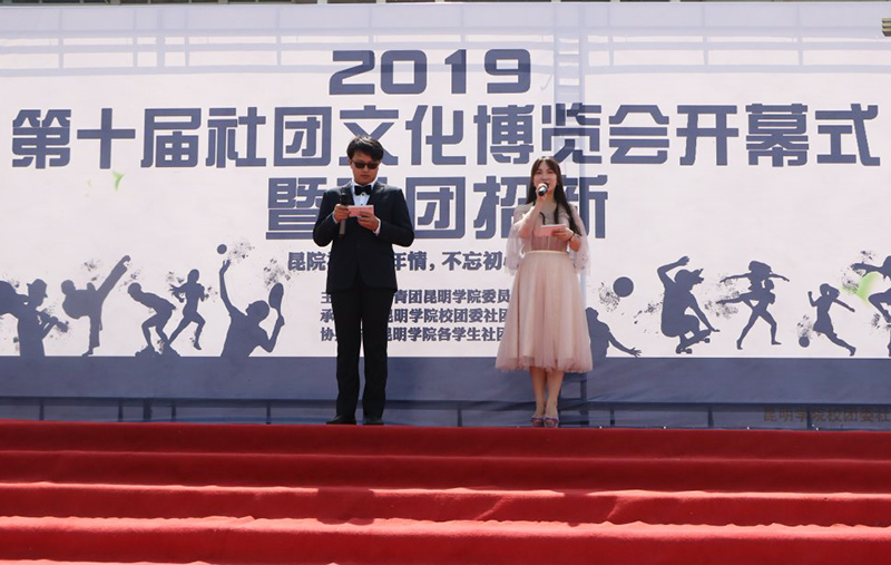1011日,第十届“昆院社团十年情,不忘初心共奋进”社团文化博览会开幕式暨社团招新圆满落幕。学校党委宣传部副部长李思成老师,学生处副处长王子龙老师,校团委副书记沈嘉、郎易老师,校团委吴雨珂、陈磊、袁西老师出席了本次开幕式,在昆高校学生代表及我校18个学院学生代表参加了本次开幕式。