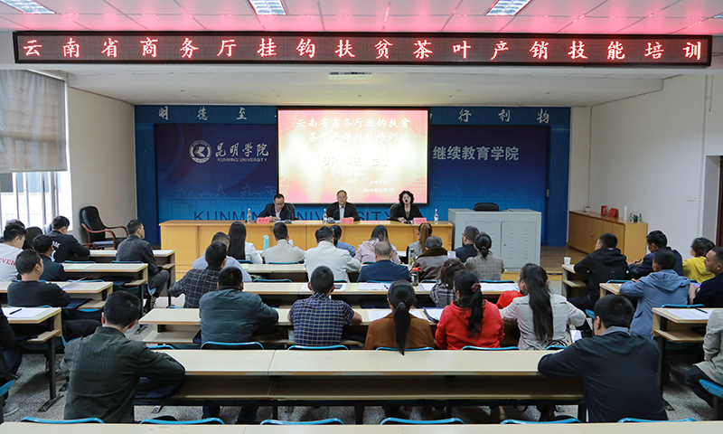 11月4日,云南省商务厅挂钩扶贫茶叶产销技能培训班在继续教育学院开班,商务厅厅长助理肖伟、商务厅人事处处长杨慧梅、商务厅人事处副处长孙聆以及继续教育学院院长管彦平参加开班仪式。