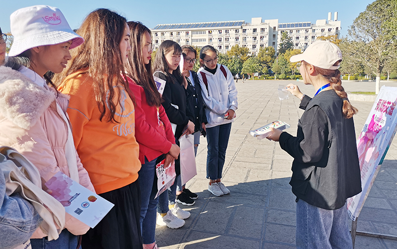 活动开始,志愿者们结合宣传展板,为参加活动的同学讲解预防性病、艾滋病相关知识,示范如何使用性病、艾滋病检测包。活动结束后,志愿者们引领各学院的同学领取检测包并进行登记。