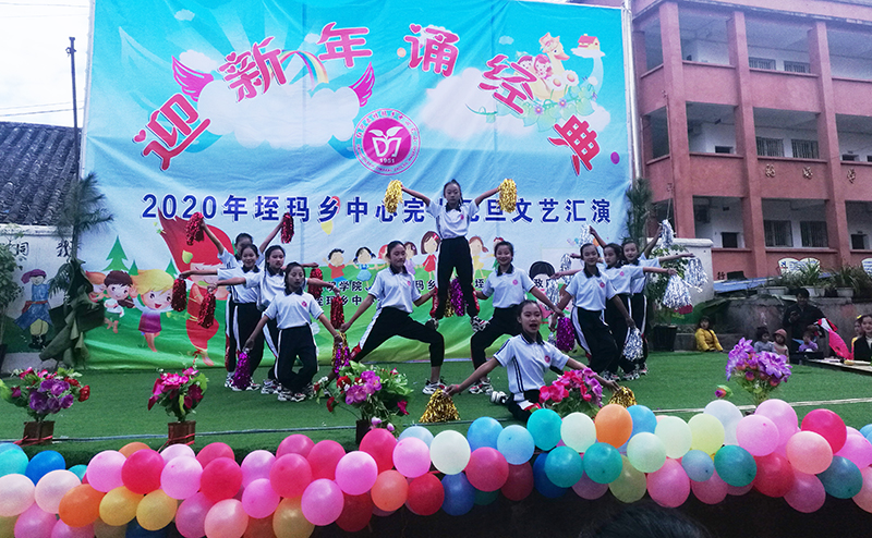 2019年12月31日,yl23455永利官网省级定点扶贫挂包点——红河县垤玛乡中心完小坐满了来自全乡6所小学表演的近1000多名师生,大家欢聚一堂,以舞蹈、诵读国学经典的形式,共同迎接新年的到来。