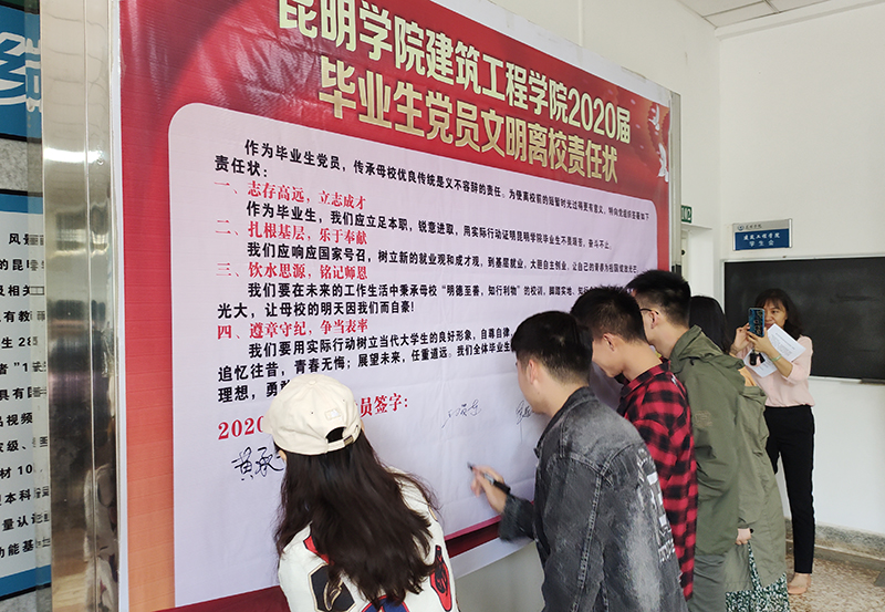 按照《中共yl23455永利官网委员会关于庆祝建党 99 周年系列活动暨在常态化疫情防控中加强基层党建 “六个一”行动方案》要求,建筑工程学院党委于7月2日在惟行楼三号楼大厅举行建筑工程学院2020届毕业生党员文明离校责任状签字仪式。