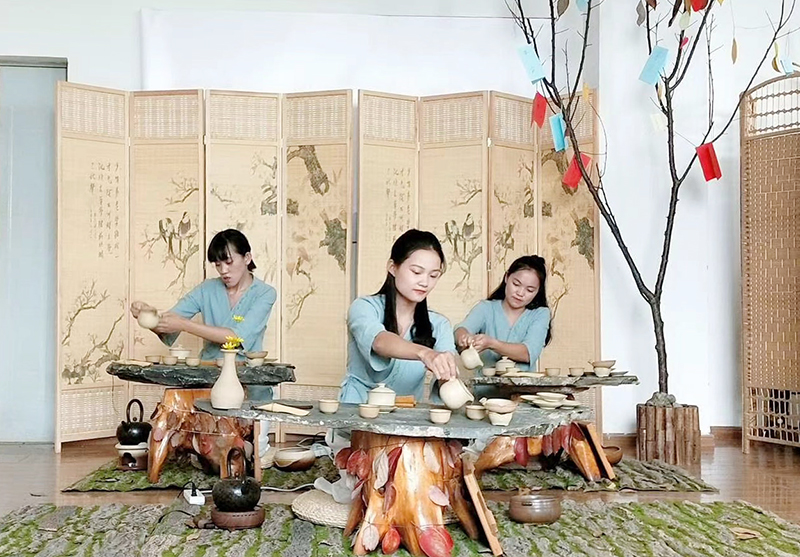 茶艺师职业资格考核鉴定分为理论知识考试和操作技能考核两部分。理论知识考试涵盖茶文化、茶艺全部相关专业知识,集中考查学生对于茶文化知识的综合理解。操作技能考核中,同学们以规范、优美、流畅的动作洗杯、落茶、冲茶、倒茶、点茶、奉茶,充分展示了茶艺操作技能,并将茶叶的色、香、味、韵以及茶道艺术的形与神诠释得淋漓尽致。